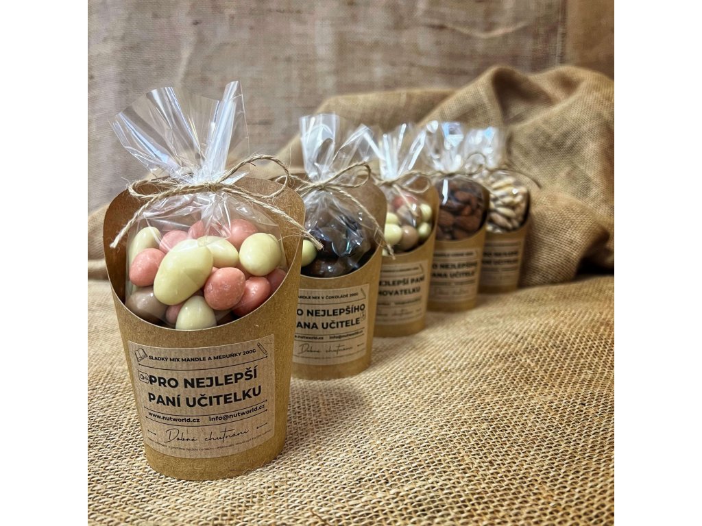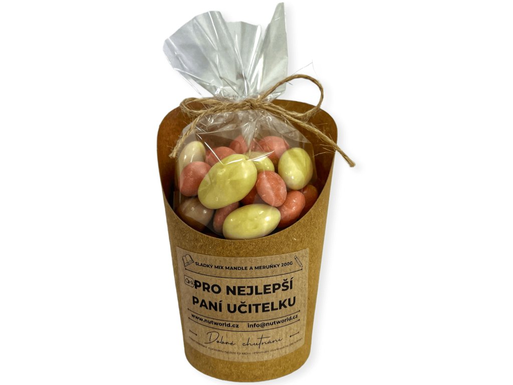 Csokoládéval bevont mandula és sárgabarack celofánban és pohárban 200g - A TANÁRNAK