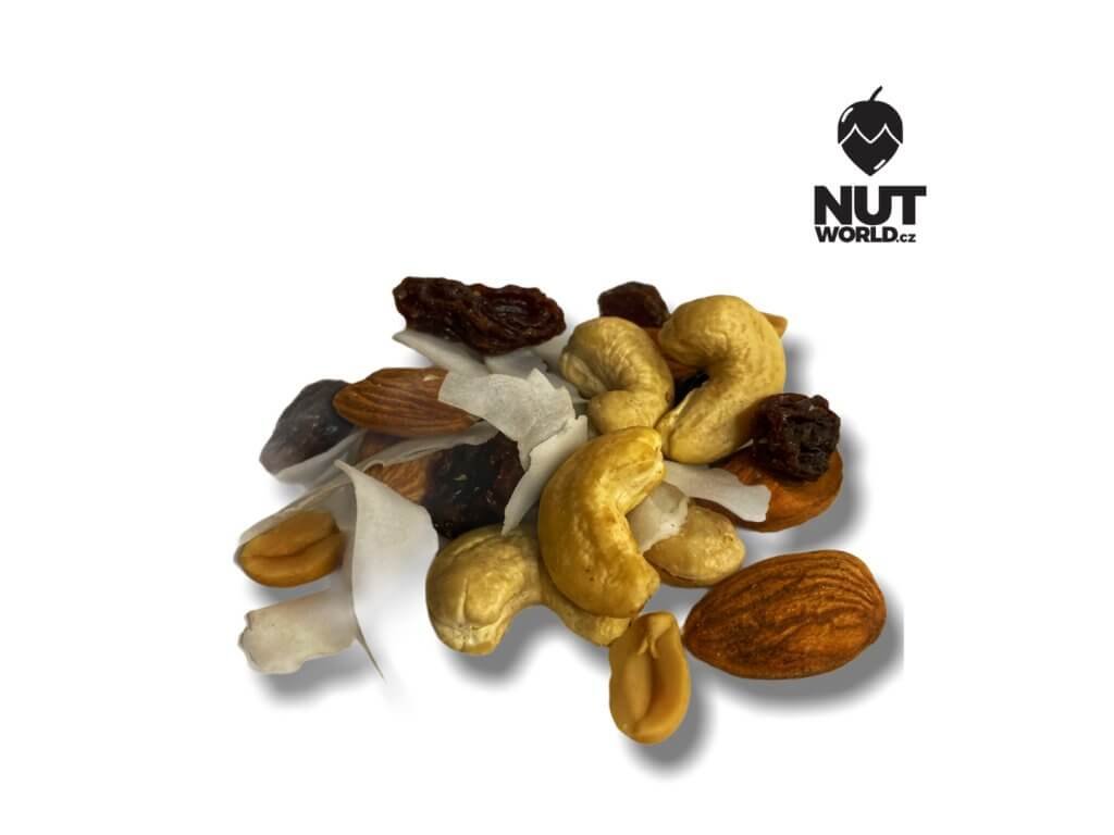 Összetevők: mazsola natúr, kesudió natúr ww320, mandula natúr, pörkölt földimogyoró, kókuszdió platy