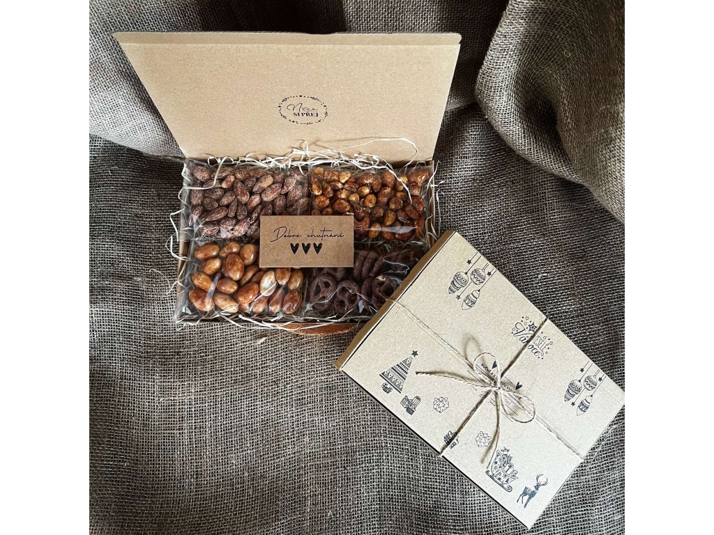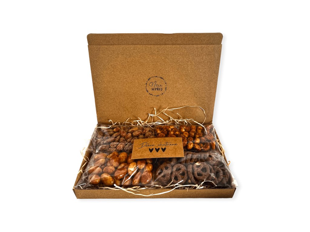 Összetevők:Földimogyoró 26%,kesudió 25%,mandula 25%, cukor 18,5%, méz 3,5% tengeri só 2%.