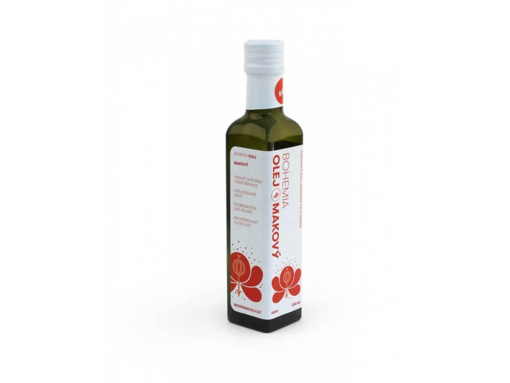 A Bohemia mákolaj tisztán természetes termék, amelyet a mák első préseléséből nyerünk, mindenféle módosítás nélkül. A préselés után az olajat 12 fokozatú textilszűrőn keresztül szűrik, majd frissen palackozzák. A cseh kék mák világhírű árucikk, amelyet elképesztő tápértékei miatt gyakran mellőznek, mint cseh szuperélelmiszert.