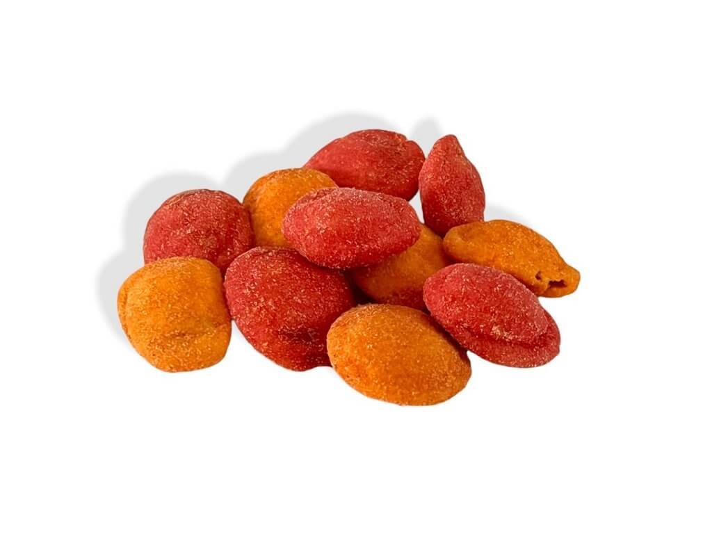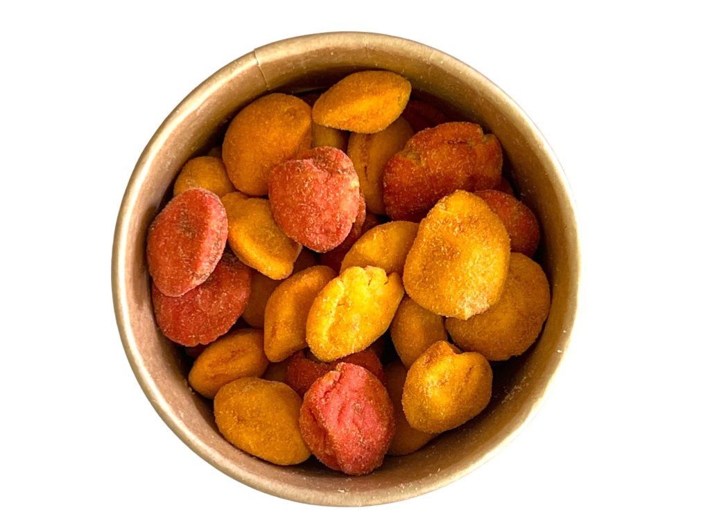 Sajt és paradicsom ízesítésű bevont földimogyoró (24,9 % földimogyoró; 2,5 % sajt fűszer; 2,5 % paradicsom fűszer)