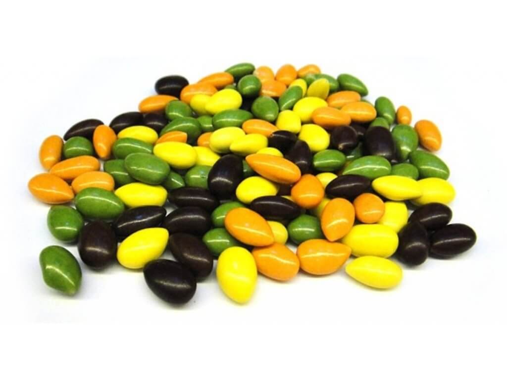 Összetevők: hámozott napraforgómag 38%, csokoládé 34%, pálmaolaj, cukor, sovány tej, tejsavó (MILK), teljes tej, szójabab, lecitin, vanillin, színezékek: E171, E100, E140, E150d, E160c, zselatin, fényezőanyag: E903