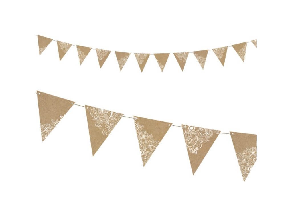 A csomag 12 db 18 cm magas és 15 cm széles papírzászlót és 3 m hosszú természetes juta zsineget tartalmaz.