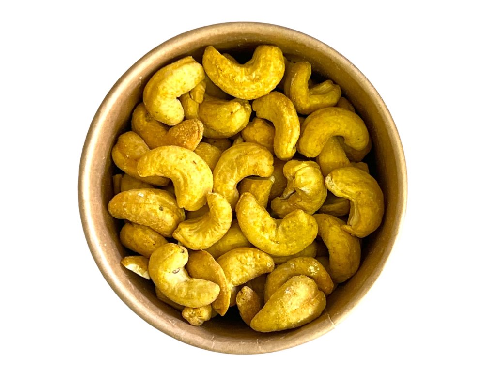 Összetevők: kesudió, só, curry fűszerkeverék, burgonyakeményítő