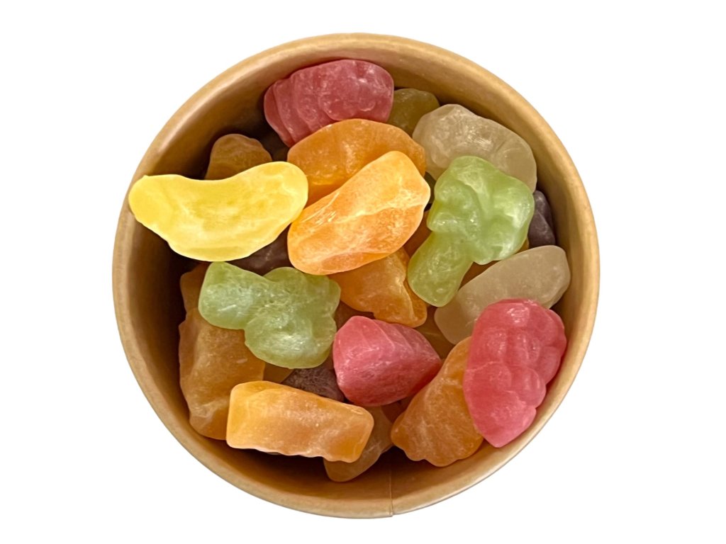 cukor, glükózszirup, víz, zselatin, gyümölcslé koncentrátum (ananász, narancs, mandarin, guava, sárgabarack, mangó, maracuja, banán, alma, papaya, lime) 1,23 %, savanyúságot szabályozó anyag (citromsav), spirulina koncentrátum, sáfránymag koncentrátum, fekete sárgarépalé koncentrátum, hibiszkusz és sárgarépa koncentrátum, aromák, fényezőanyag (kókuszolaj, fényezőanyag (karnaubaviasz))